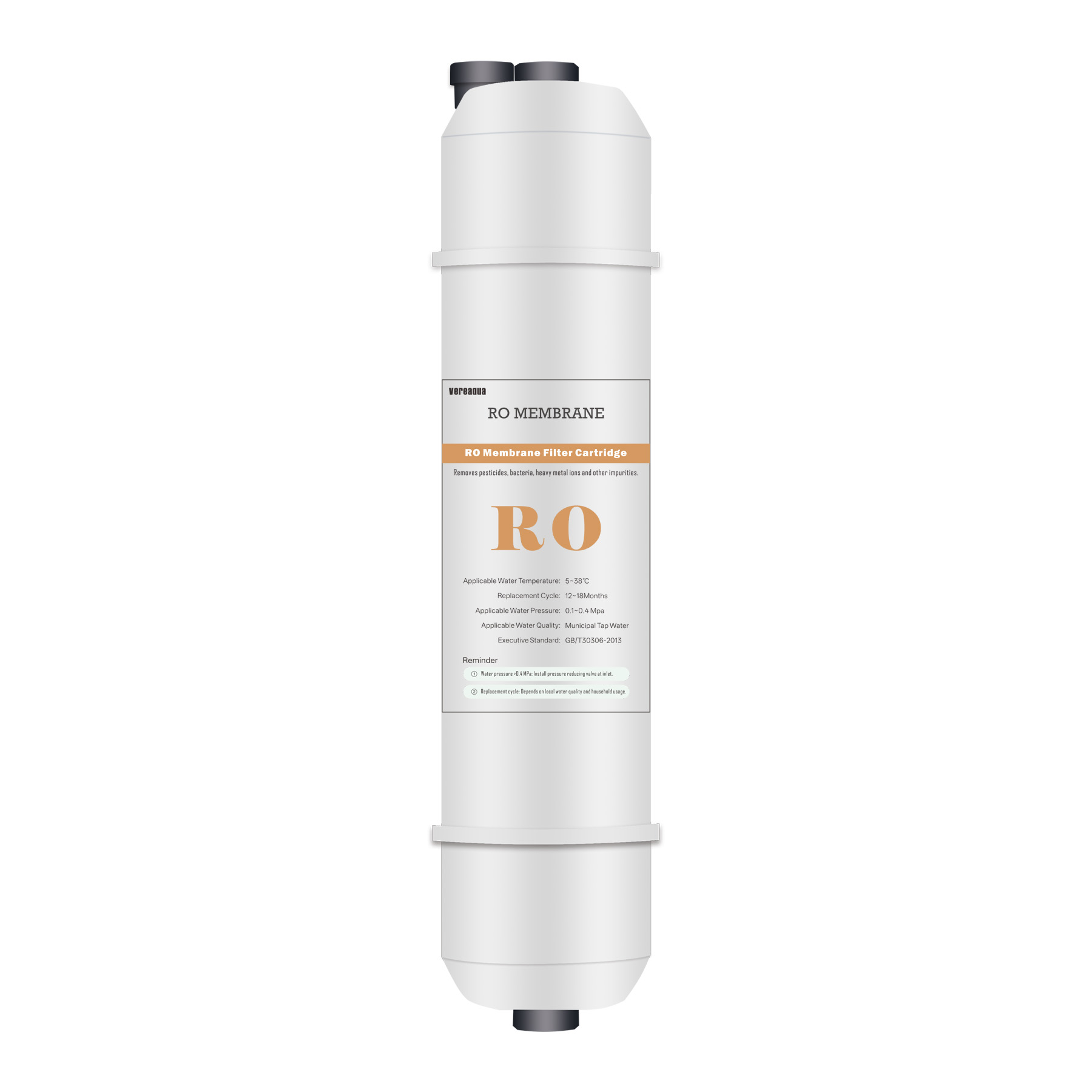 250 ppm softened tap water | 15% | As rated above | Individual element flow may vary by±20% |