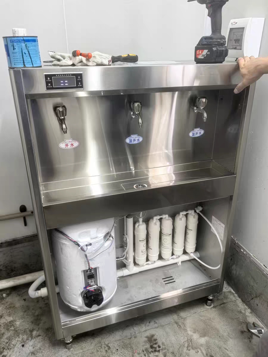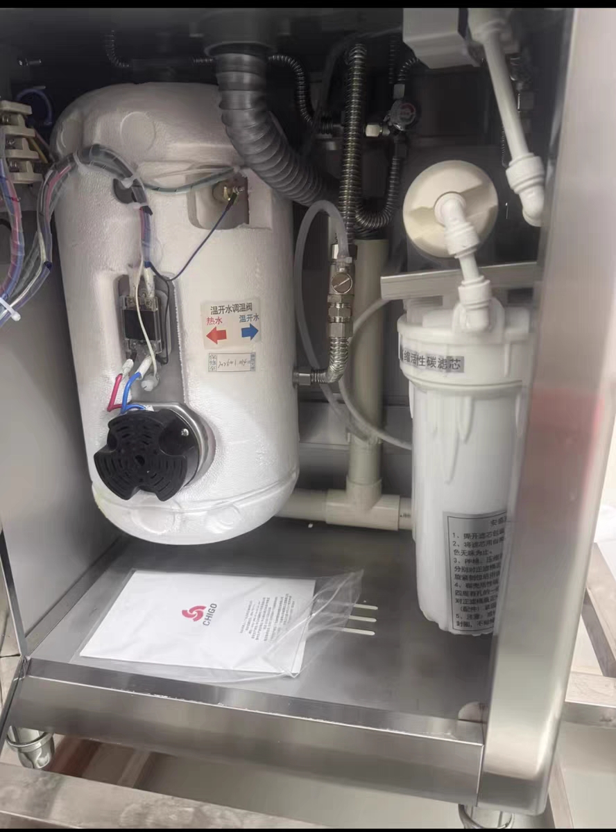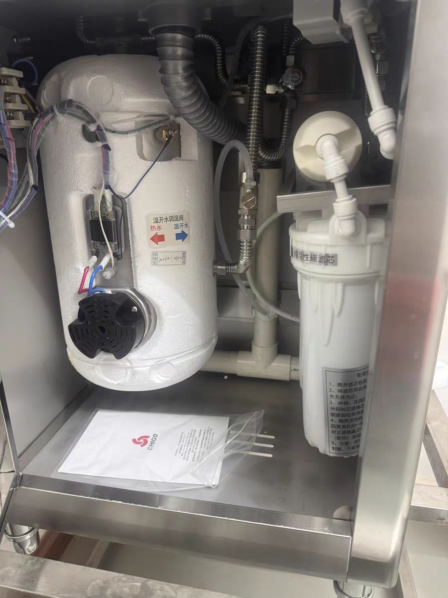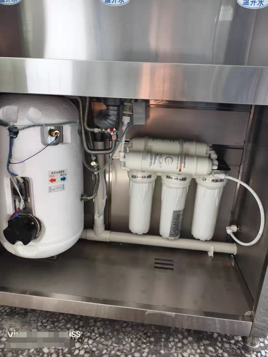 Vereaqua hot water dispenser filter cartridge installation on-site.