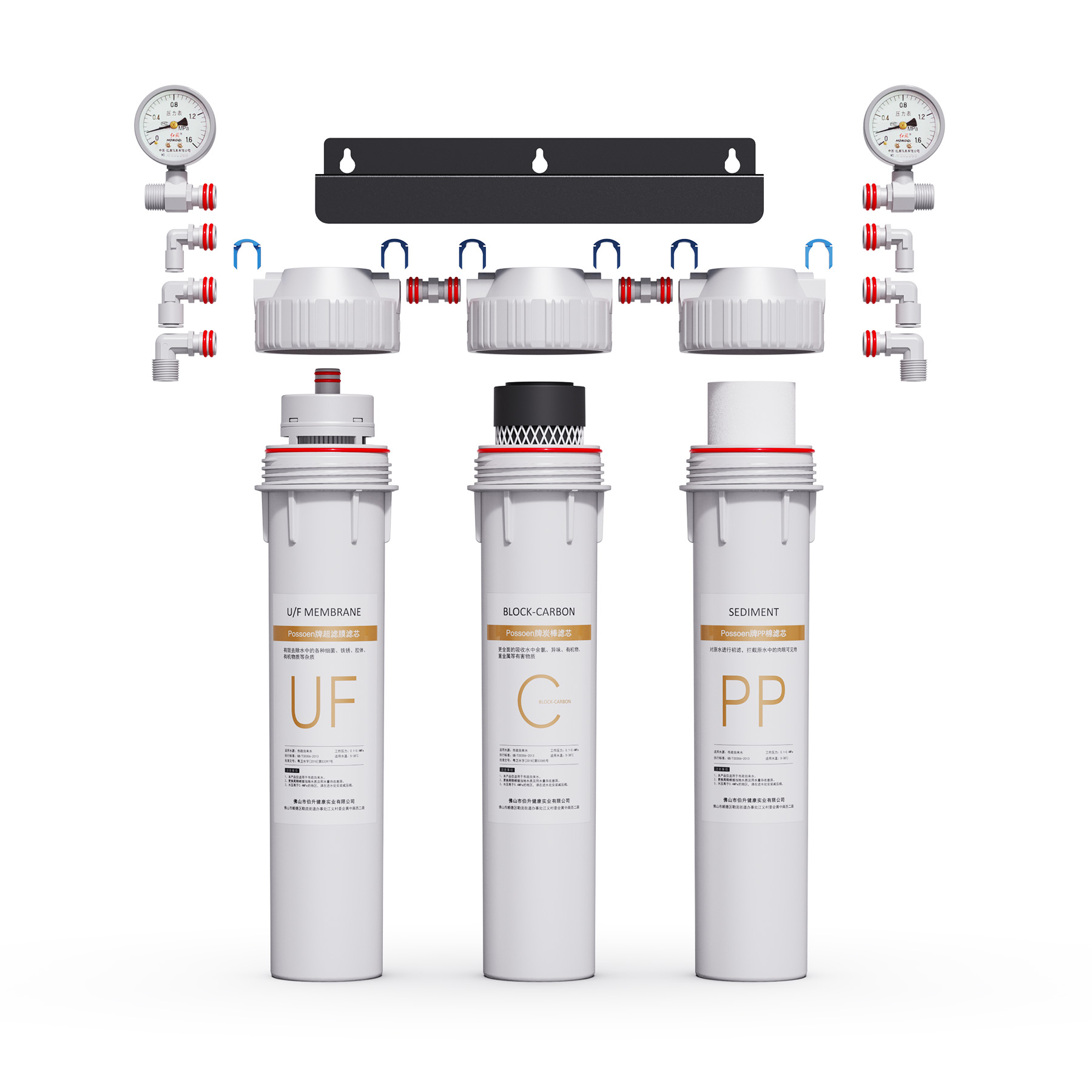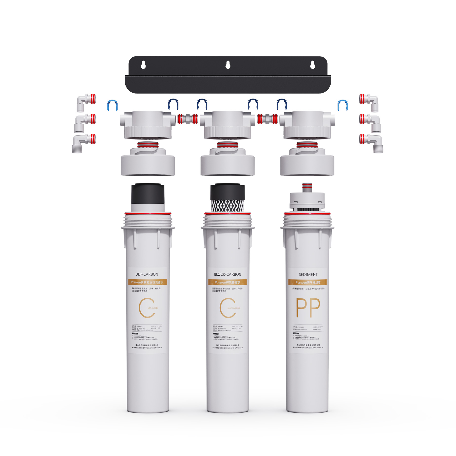 • •  The filter housing is injection molded using food-grade PP/POM raw materials. It utilizes a threaded and snap-fit assembly (or bayonet fitting) for convenient replacement and use, and features high pressure resistance (or strong pressure bearing capacity).